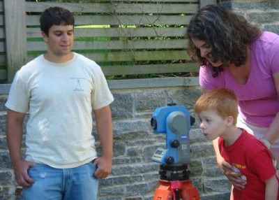 July 16, 2008 - Ridgefield, CT: Stalker Land Surveying, Inc visited the "New World Kids" at The Aldrich Contemporary Art Museum, an experimental summer program for kids ages 5 & 6. The goal of the program is to encourage creative thinking through exposure to art and other outside influences. The summer campers were given a chance to "grill" owner Roger Stalker, and survey technician Matt Carbone about the various types of "lines" they encounter as surveyors. The questions and comments about the presentation and the equipment brought for display, were as diverse and inspiring as the group of children assembled. Following the discussion, each camper was given the opportunity to look through the optics of one of the survey instruments on display.